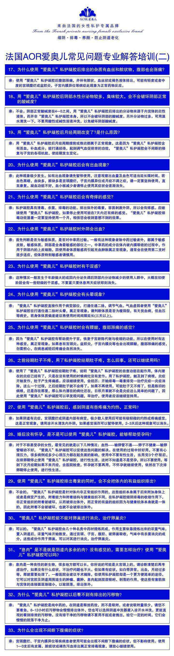法国天云瑞成生物科技(国际)集团公司是一家集科研、开发、生产、品牌策划为一体的集团公司。公司技术力量雄厚,引进国际尖端的生产及检测设备,严格按照ISO9001标准生产,不断利用国际科学技术成果,生产高品质女性私护产品,旗下品牌畅销13个国际和地区。经过上百万多例的临床实验,创造医学与人体自然和谐之美。 爱奥儿定位于高端女性私处护理,以“天然、科技、时尚、健康、魅力”为品牌向导。选用天然草本名贵植物为原料,以现代生物技术与传统技术相结合,研发的高端私处护理用品